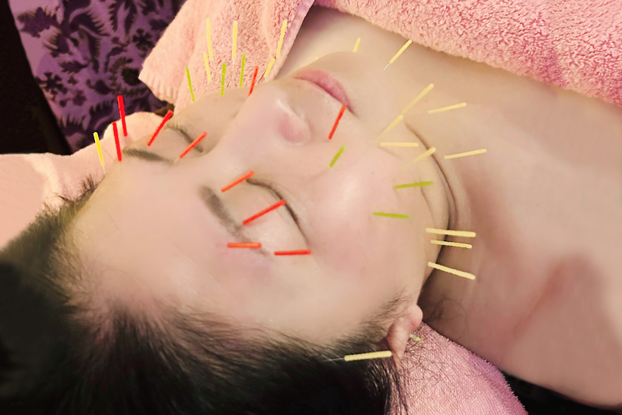 ①カウンセリング ②全身の鍼(経絡治療) ③美顔鍼 ④お顔の筋膜マッサージ ⑤へッドリフレ ⑥デコルテリンパケア ⑦仕上げ |